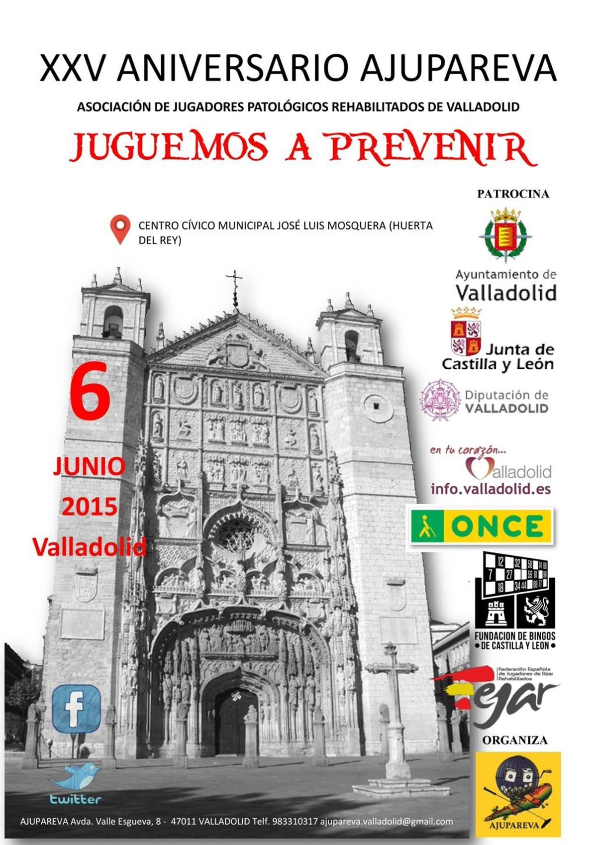 La Asociación de Jugadores Patológicos Rehabilitados de Valladolid (Ajupareva) celebra este sábado, 6 de junio, en el Centro Cívico José Luis Mosquera, el 25 aniversario de su constitución con tres ponencias, dos conferencias, una representación teatral y una cena de hermandad.
