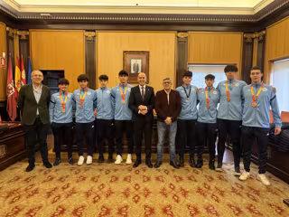 Acompañado del concejal de Deportes, Vicente Canuria, Diez ha recibido esta mañana en el Salón de Plenos a los jugadores del Club de Balonmano Abanca Ademar León que han participado en el Campeonato y Copa de Selecciones Autonómicas (Cesa) de Balonmano, celebrado el pasado mes de enero en Cataluña.