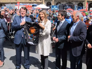 Alicia García ha sido la encargada de cortar la cinta que ha servido para inaugurar la primera etapa de la Vuelta Ciclista a Castilla y León. La ronda deportiva ha comenzado en la Plaza Mayor de Salamanca. En este acto ha estado acompañada, entre otras autoridades políticas, por el alcalde de Salamanca, Alfonso Fernández Mañueco.