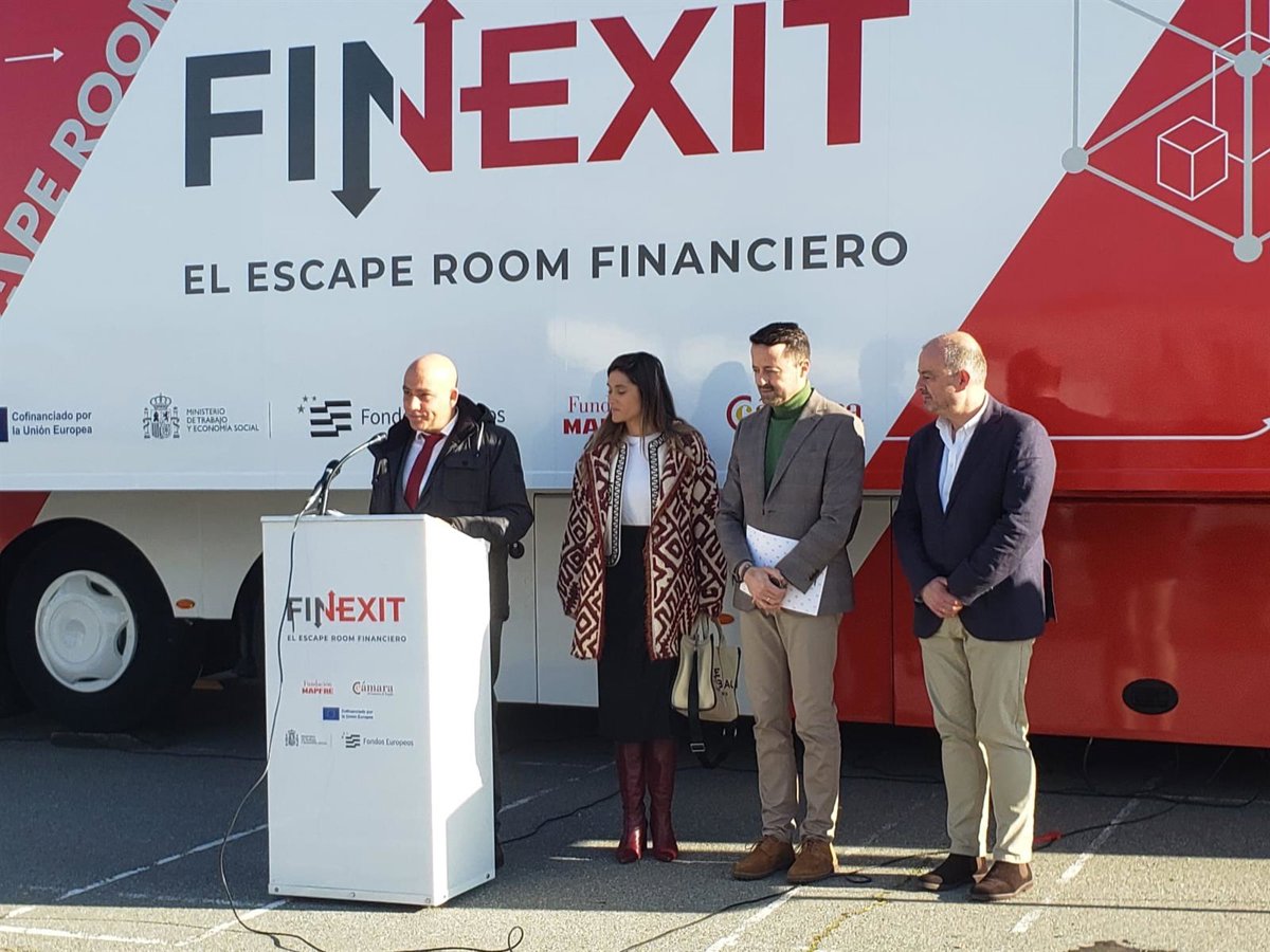Los alumnos de diversos módulos de Formación Profesional del centro 'María Moliner' de La Albuera (Segovia) han participado en un 'juego de escape' instalado en un autobús que la Fundación Mapfre y la Cámara de Comercio están rotando por toda España para formar a esta franja de alumnos en conceptos de finanzas y economía a través del juego.