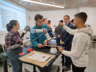 En concreto, los dos robots colaborativos y las 15 gafas de realidad mixta ayudan a que los estudiantes se formen y practiquen con alta tecnología que luego se podrán encontrar una vez accedan al mercado laboral, tal y como ha reseñado el ingeniero y formador Sants Tello.