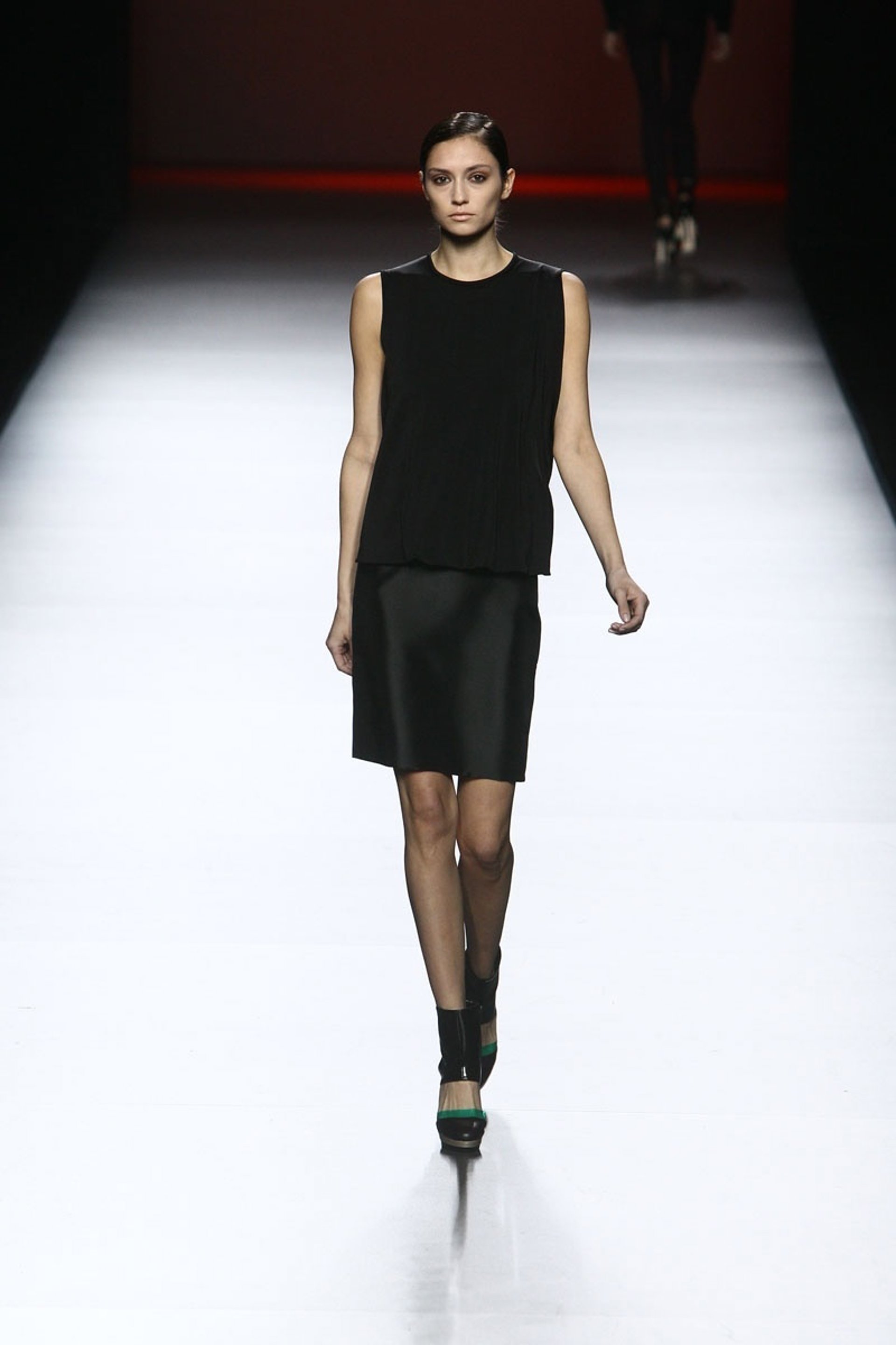 La colección para el otoño-invierno 2012-2013 de Amaya Arzuaga ha pisado la pasarela de la Mercedes-Benz Fashion Week Madrid invitándonos a jugar a algo distinto: la superposición de tejidos y el contraste de vólumenes. Una mezcla que ha dado lugar a mujeres con siluetas inesperadas.