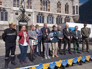 Frente a la Casa Botines, las autoridades civiles y militares acompañaron a Amidown León. Entre ellos el alcalde de León, Antonio Silván, que ha recordado que en el Consistorio "trabajan tres personas con Síndrome de Down" y siempre están "con una sonrisa en su cara y en constante disposición".