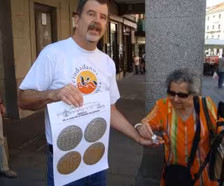 La Asociación Amigos de la Casa de la Moneda de Segovia ha lanzado al aire este jueves junto al Acueducto varias monedas para recordar la proclamación en la ciudad de la Constitución de Cádiz.