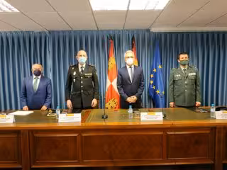 El delegado del Gobierno, en el centro, durante la rueda de prensa en la que ha informado de datos de criminalidad en CyL. - EUROPA PRESS.