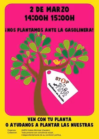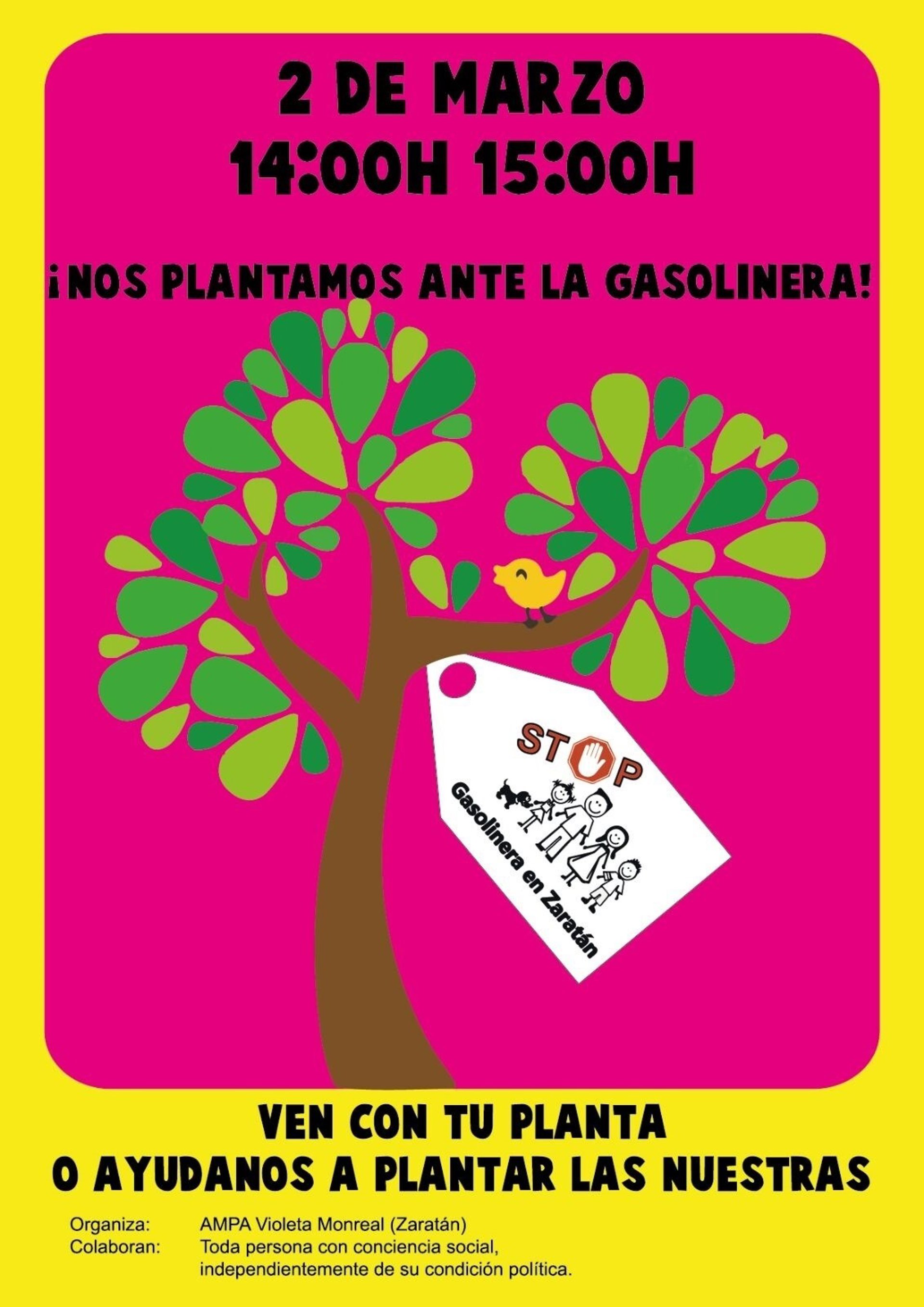 La Asociación de Madres y Padres de Alumnos (A.M.P.A) del Colegio Público Violeta Monreal de Zaratán (Valladolid) ha convocado un acto en el que se procederá a la plantación de un árbol en el solar donde se tiene previsto la instalación de la gasolinera.