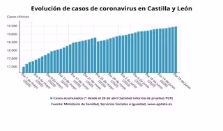 Además, el número de fallecidos en hospitales de Castilla y León asciende a 2.045 personas, tras dos decesos en las últimas 24 horas, mientras que el número de altas alcanza ya las 8.481, de las cuales 12 se han registrado también en las últimas horas.