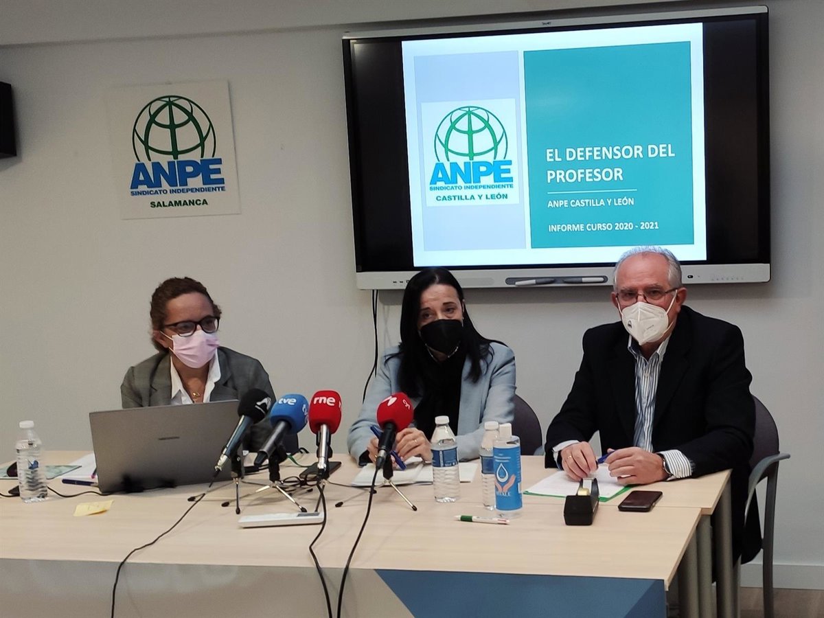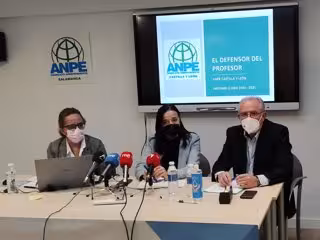 La presidenta de ANPE CyL, Pilar Gredilla, centro, junto a sus compañeros del sindicato María José Martín y Nicolás Ávila en Salamanca - EUROPA PRESS