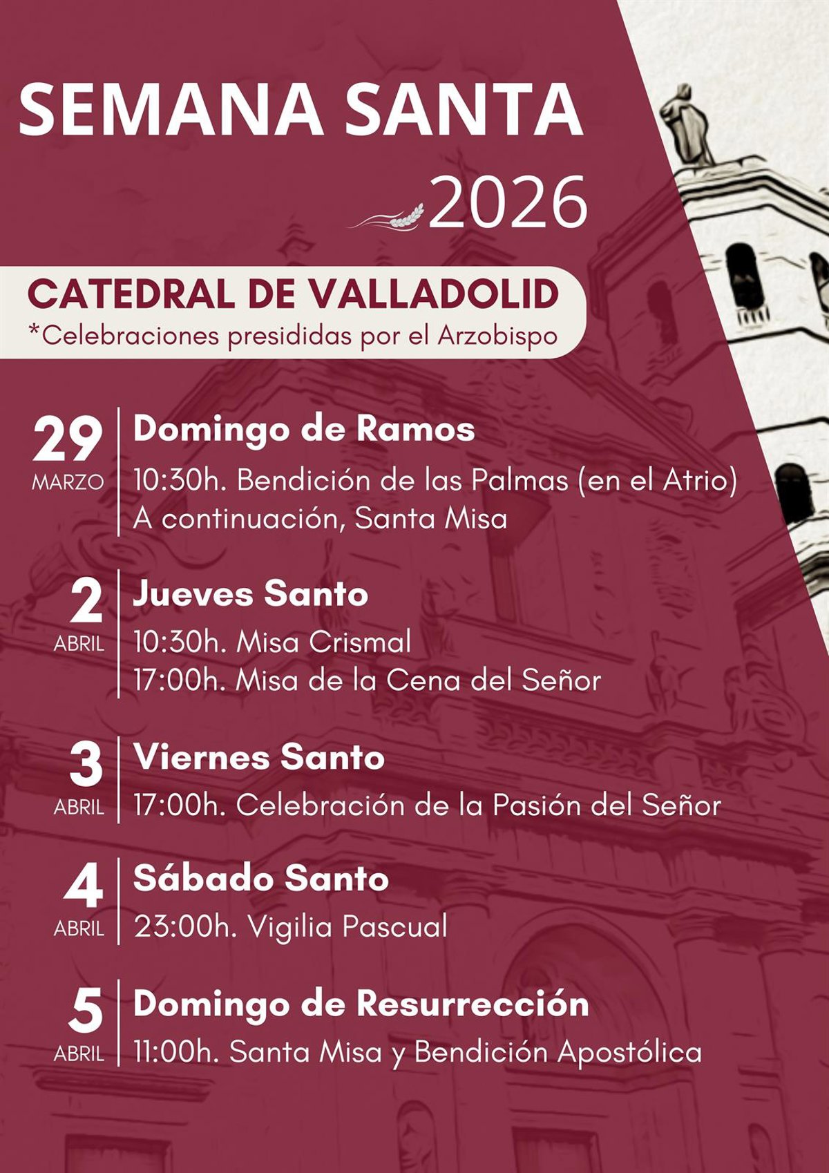 Ya el Sábado Santo, a las 23.00 horas, en la Catedral vallisoletana se celebrará la Vigilia Pascual, también presidida por el Arzobispo. Y el Domingo de Resurrección, a las 11.00 horas, la Santa Misa con Bendición Apostólica, finaliza el comunicado.