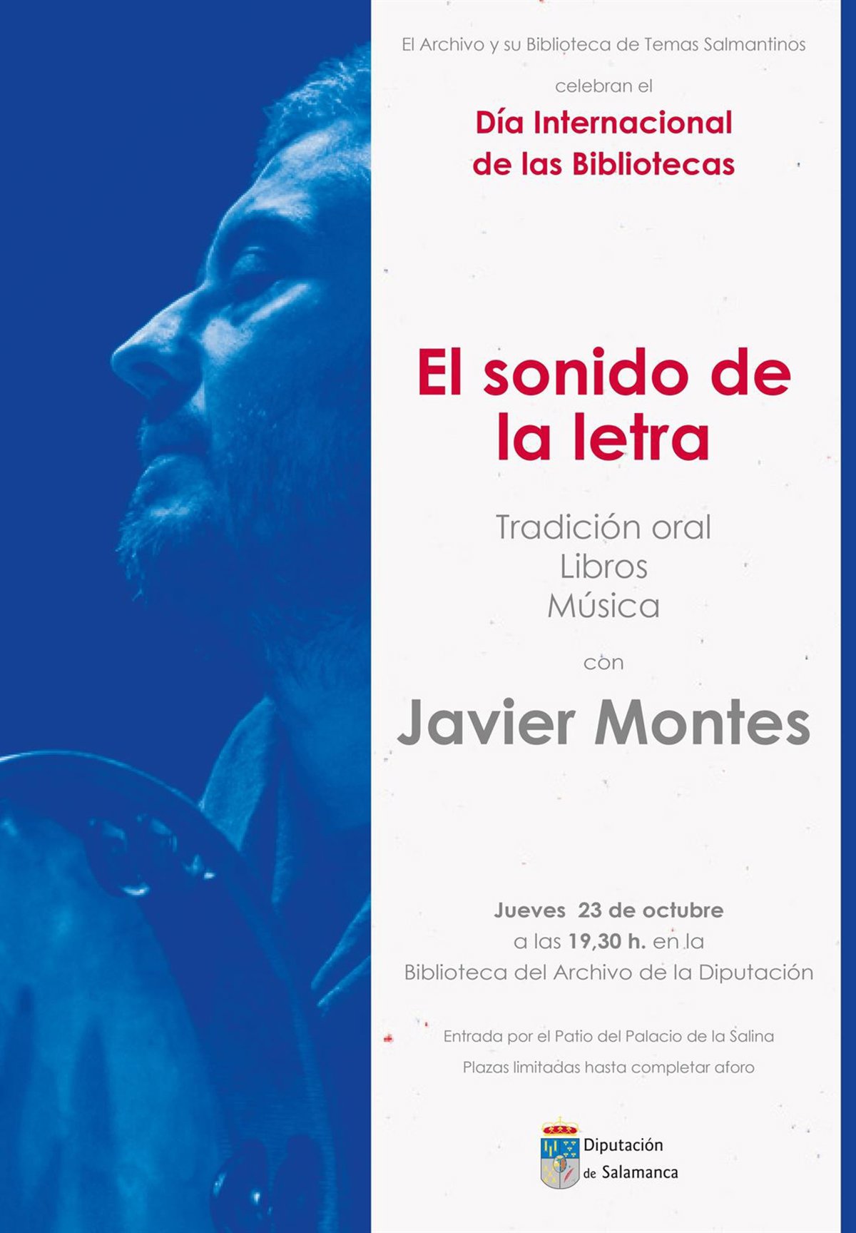 El Archivo de la Diputación de Salamanca y su Biblioteca de Temas Salmantinos celebran este jueves el Día Internacional de Las Bibliotecas con en una propuesta que aunará música, libros, tradición oral y sorpresa de la mano del músico Javier Montes, tamborilero y Licenciado en Etnomusicología en el Conservatorio Superior de Castilla y León y en la Universidad Técnica de Estambul.