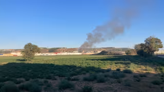 Columna de humo por el incendio en una nave en Santovenia de Pisuerga (Valladolid). - EUROPA PRESS