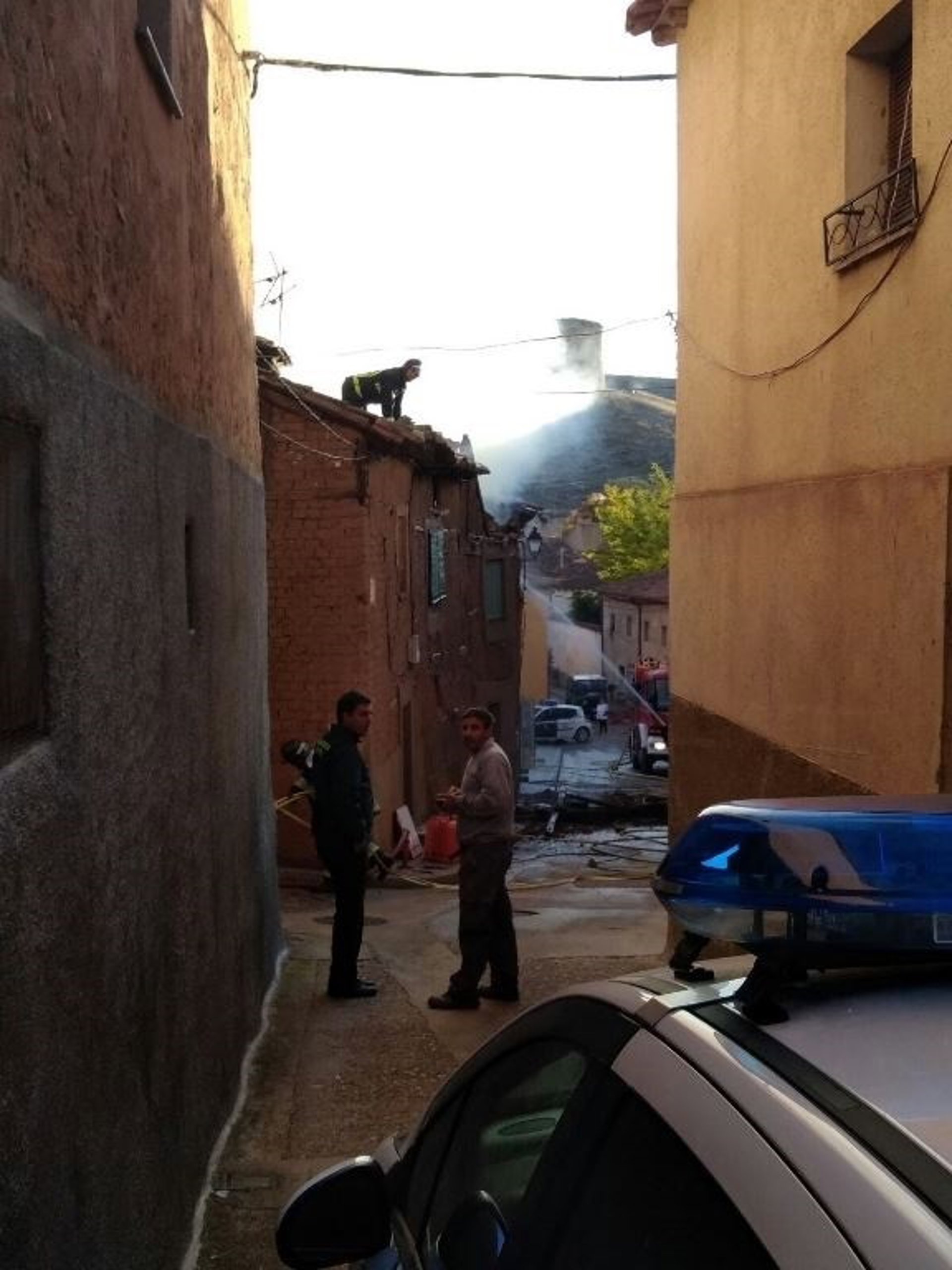 El fuego se originaba en una de las casas que está medio en ruinas y que consta de dos plantas y que se encuentra en la calle las Monjas, cerca del Convento. Las llamas alcanzaron las vigas del tejado, lo que ha provocado que se derrumbara y que el fuego se propagaran a las dos viviendas contiguas.