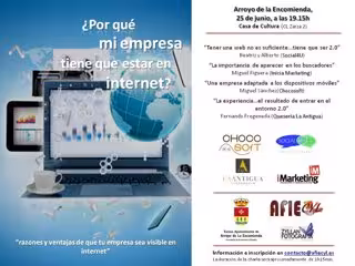 La jornada, que lleva por título 'Por qué mi empresa tienen que estar en Internet', está organizada por la Asociación para el Fomento de la Iniciativa Empresarial de Castilla y León (Afiecyl), Zyllan Fotografía y la Concejalía de Economía y Empleo del Ayuntamiento de Arroyo.