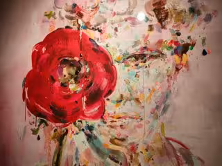 'Flores rojas en Salamanca' es el título de esta exposición, formada por 44 obras de pintura al óleo y materiales mixtos, 29 de ellas de Long Beini y 15 que han sido realizadas por su padre, Long Huan, también artista.