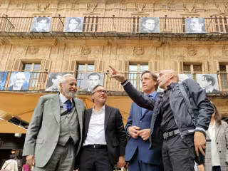 La Plaza Mayor de Salamanca luce en sus balcones un total de 114 retratos del poeta Federico García Lorca, junto a otros de amigos, familiares y personalidades de su época, una serie de obras de gran tamaño realizadas por el artista Florencio Maíllo, quien ha cumplido el "sueño" de que el autor de obras universales como Romancero Gitano regrese a la ciudad y al ágora que visitó en su momento.