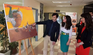 El cuadro, realizado con pintura acrílica y velo plástico, se convierte en el homenaje de la Universidad Europea Miguel de Cervantes al insigne escritor que le da nombre.