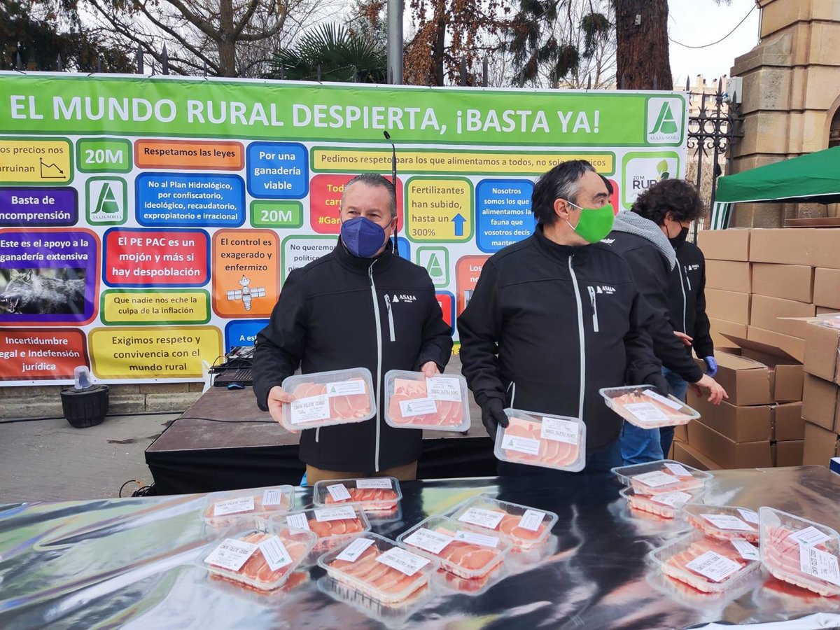 Asaja Soria ha repartido este jueves, 3 de febrero, un total de 2.000 bandejas de carne de cerdo "de calidad" en una jornada reivindicativa desarrollada en la plaza Mariano Granados en defensa del sector en la que han recordado que la "sociedad come lo que produce el campo" por lo que han pedido no castigar al sector agrícola y ganadero.