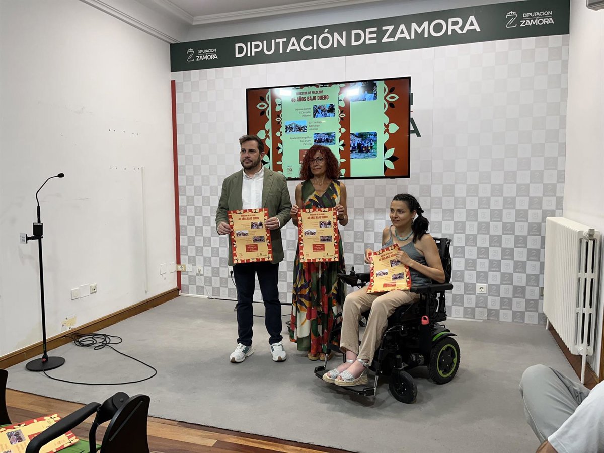 El vicepresidente de la Diputación de Zamora y diputado de Educación, Cultura y Turismo, Víctor López de la Parte,; la presidenta de la Asociación Etnográfica Bajo Duero, Carmen Ramos, y la concejala de Cultura del Ayuntamiento de Zamora, María Eugenia Cabezas, han presentado esta mañana esta actividad que cuenta con la colaboración de la institución provincial, el consistorio y la Fundación Caja Rural de Zamora.