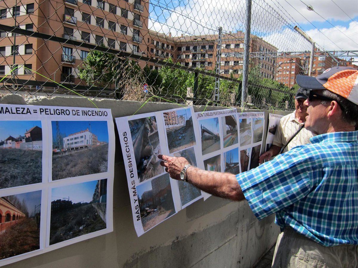Miembros de la Federación de Asociaciones Vecinales, concentrados este sábado en el paso peatonal de la Avenida de Segovia que comunica con el barrio de Delicias, han pedido que el Ayuntamiento dé "el paso definitivo" para solucionar el "problema que supone la falta de limpieza y seguridad en la franja ferroviaria".