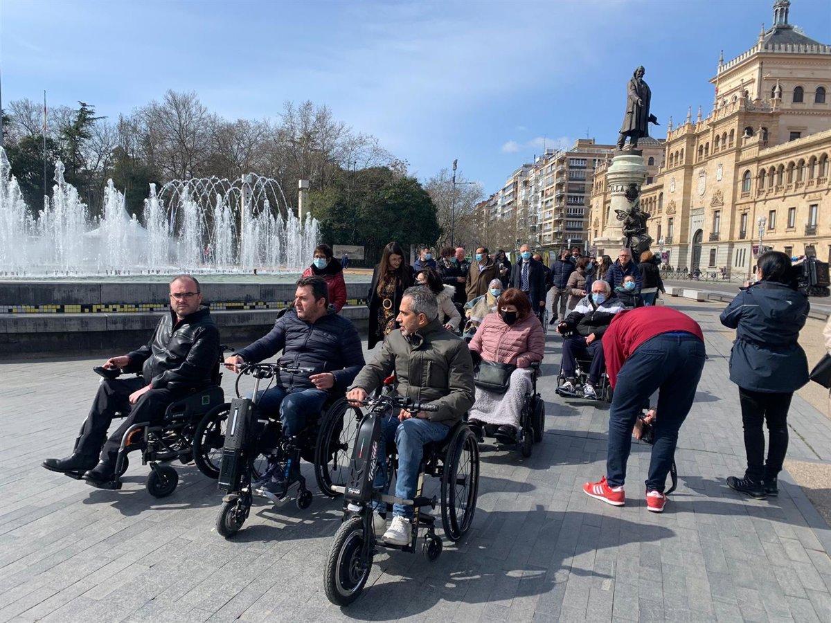 Usuarios y directivos de Aspaym, acompañados de representantes de las administraciones, participan en una visita guiada accesible en el centro de Valladolid. - ASPAYM