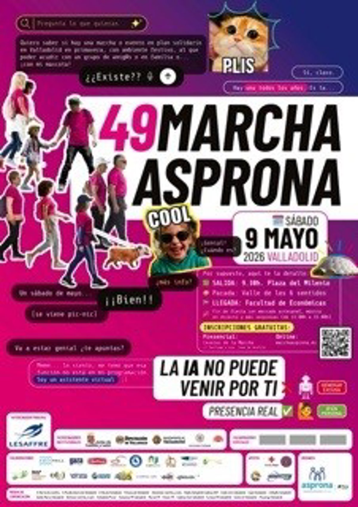 Asprona Valladolid ha presentado este martes la 49 edición de su Marcha solidaria, que se celebrará el próximo sábado 9 de mayo bajo el lema 'La IA no puede venir por ti', un mensaje con el que la entidad ha buscado poner en valor lo "irremplazable de compartir y apoyar en persona" en un entorno cada vez más digitalizado.