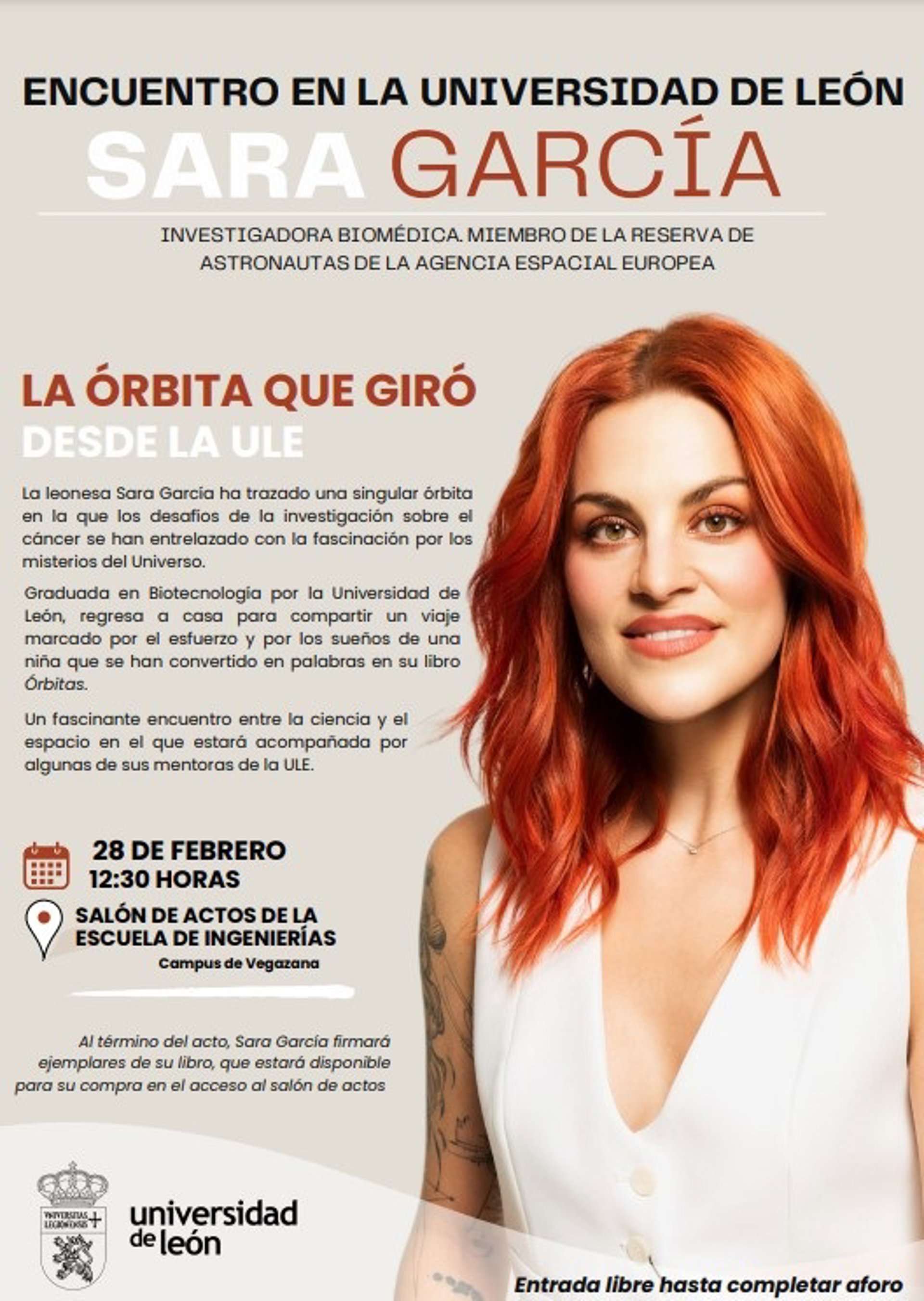 Cartel anunciador de la visita de la astronauta Sara García a la Universidad de León. - ULE