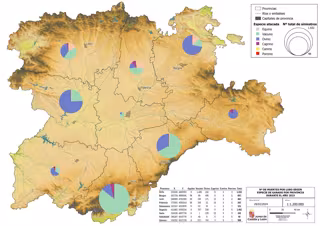 El equino, con 298 animales muertos, representa el 5 por ciento de las bajas, distribuidos principalmente por la cordillera cantábrica, en las provincias de Palencia, Burgos y León, con 98, 94 y 85 respectivamente. Por último, los daños sobre ganado caprino suponen el 3 por ciento del total, con 158 bajas.