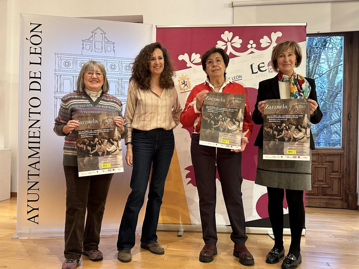 La concejala de Acción y Promoción Cultural del Ayuntamiento de León, Elena Aguado (centro derecha), con el cartel de la zarzuela 'Las de Caín', que acogerá el Auditorio de León este fin de semana en beneficio de Amnistía Internacional y Manos Unidas. - AYUNTAMIENTO DE LEÓN