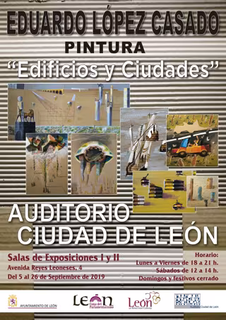 El Auditorio Ciudad de León acoge desde este jueves y hasta el 26 de septiembre la muestra pictórica de Eduardo López 'Edificios y Ciudades' que presenta una puesta en valor el edificio frente al urbanismo.