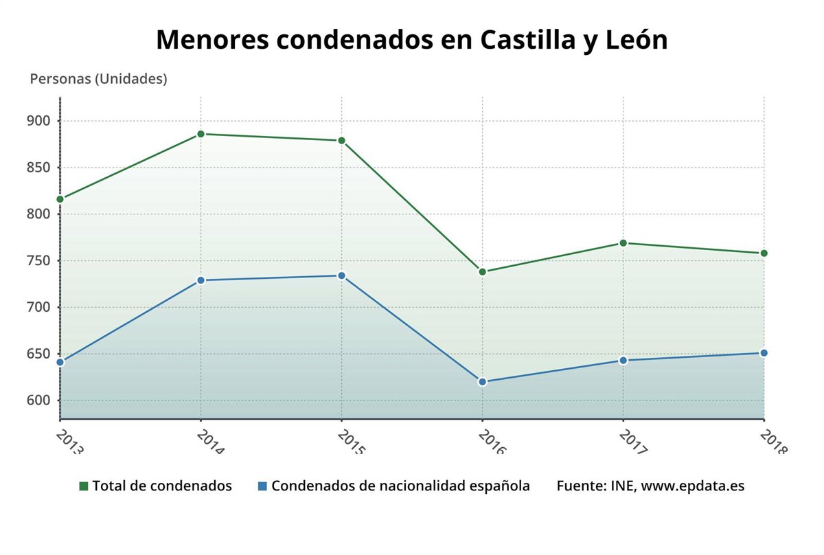 Con estos datos Castilla y León es la sexta región con un mayor número de menores condenados tras Andalucía (2.775), Valencia (2.146), Cataluña (1.669), Madrid (1.168) y Canarias (846).