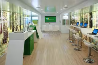 La empresa ha instalado en el interior del vehículo una pantalla de plasma de 60 pulgadas, visores con imágenes 3D, un reproductor vídeo-DVD y un equipo para proyectar películas informativas y formativas relacionadas con el medio ambiente y las energías renovables.