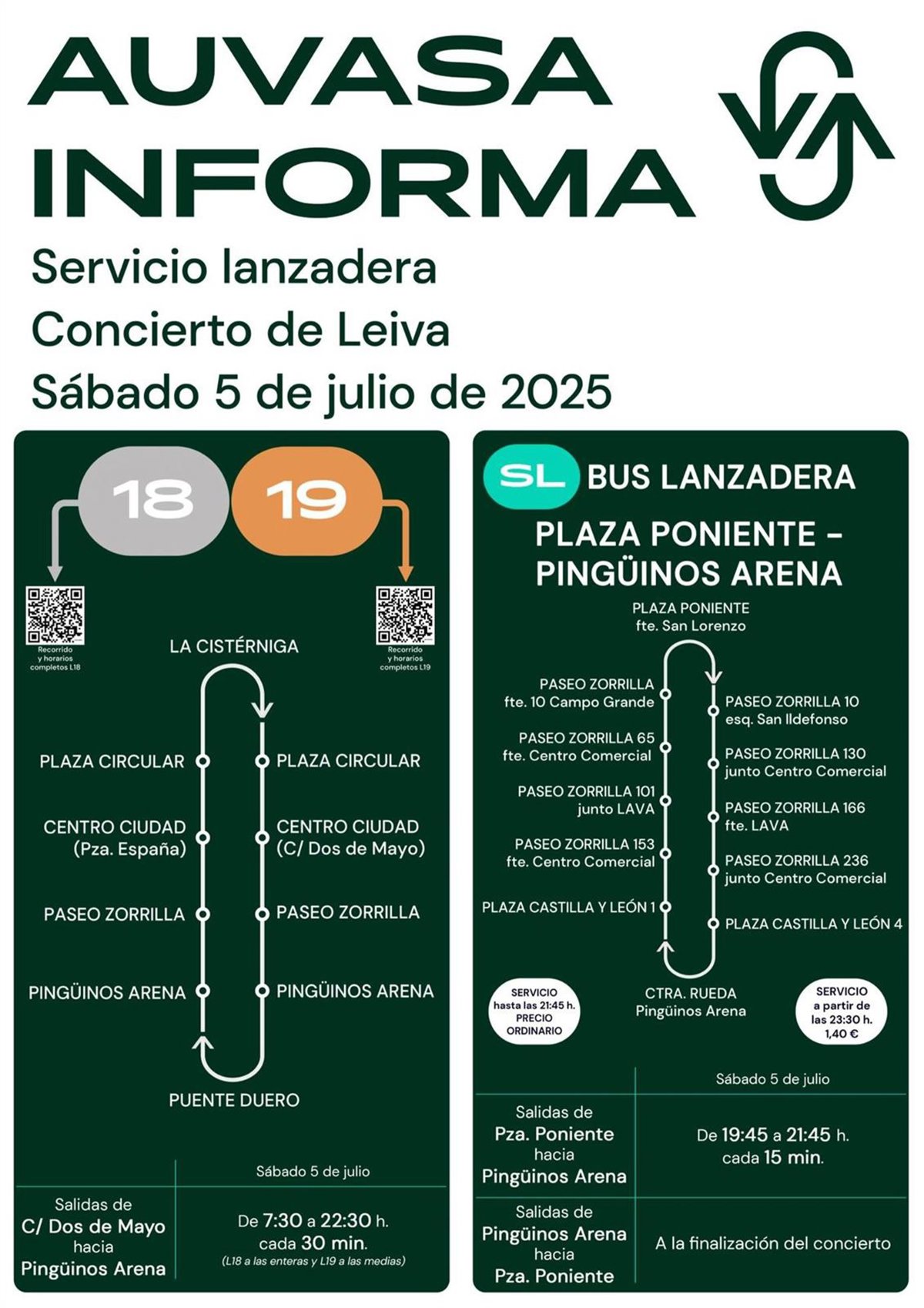 La empresa de transportes Auvasa prestará el servicio lanzadera por el concierto de LEIVA, que tendrá lugar en el Pingüinos Arena el 5 de julio, con el objetivo de que todas las personas puedan acudir al evento de una forma cómoda y en transporte público.