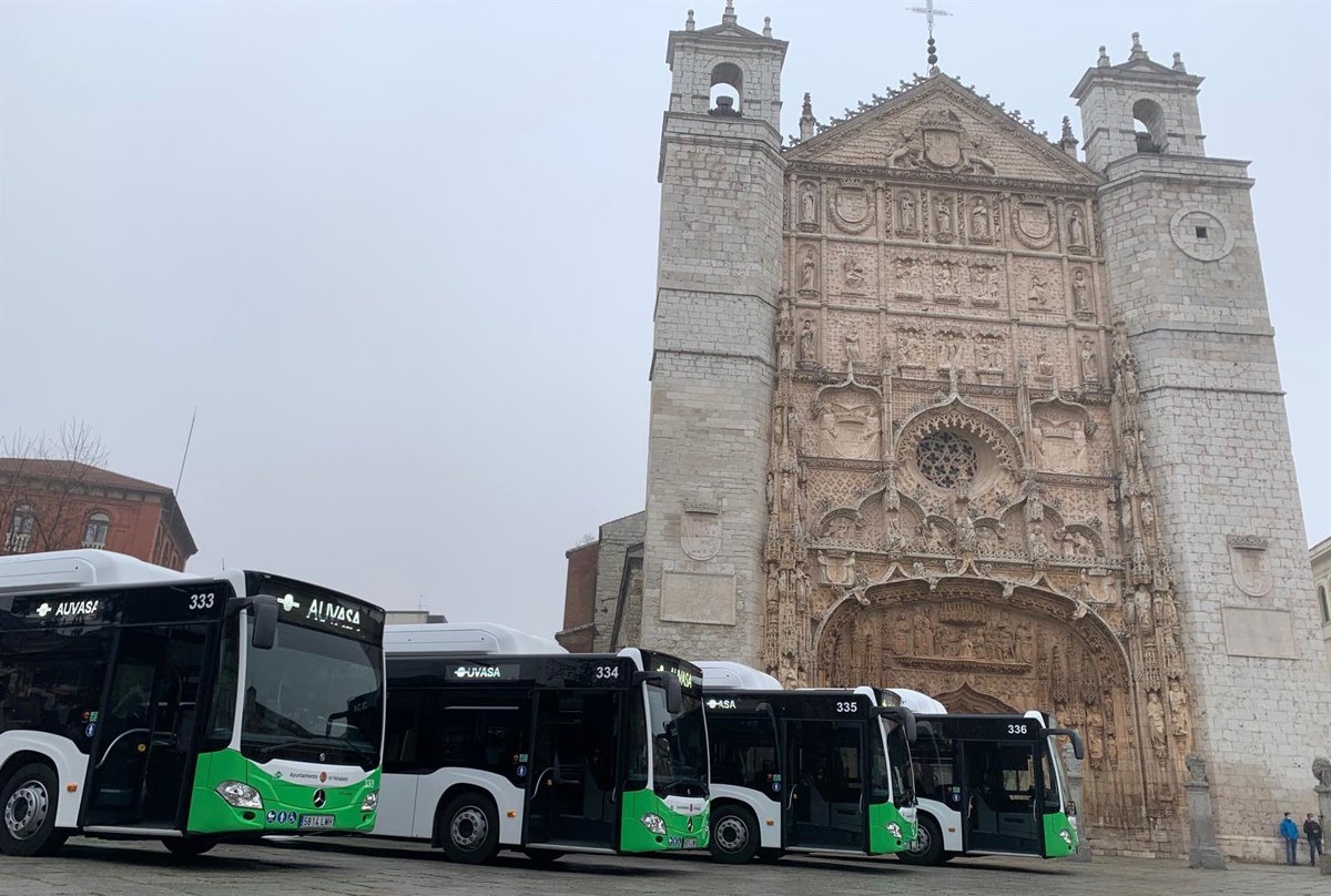 Archivo - Nuevos vehículos de Auvasa propulsados por GNC, ante la iglesia de San Pablo. - EUROPA PRESS - Archivo