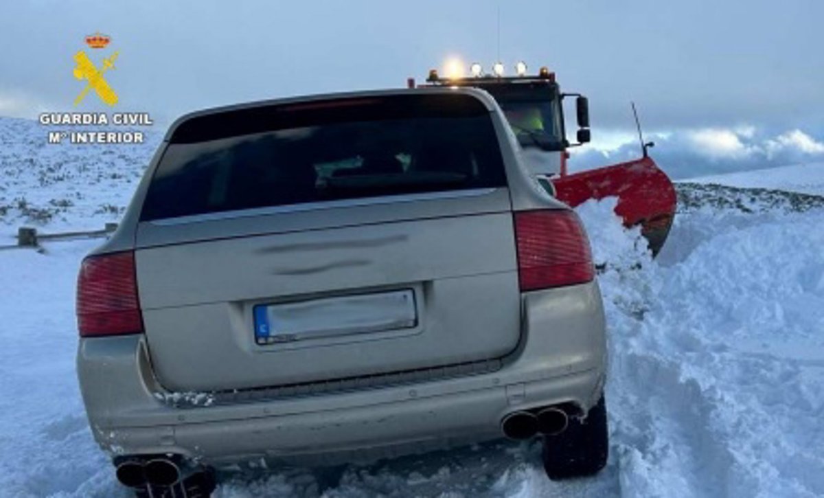 La Guardia Civil de Zamora auxilió a una familia que llevaba a un bebé de un mes y se quedó atrapada con su vehículo en la Laguna de los Peces por el temporal de nieve.