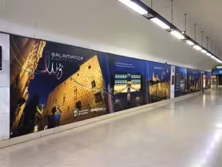 Avanza ha puesto en marcha la promoción de Salamanca como destino turístico con la colocación de un gran vinilo en el túnel que comunica la Estación Sur de Autobuses de Madrid(Méndez Álvaro) con la red de Metro y de Cercanías de Madrid.