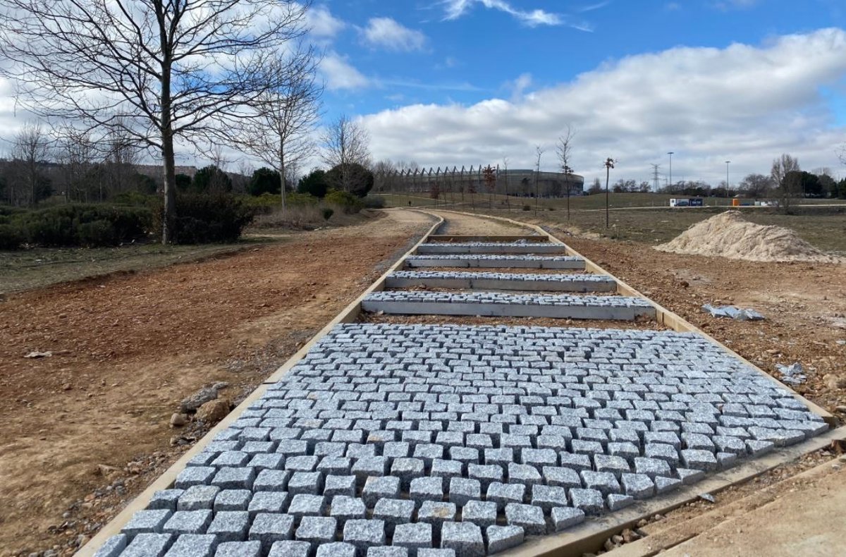 Tramo de adoquín en el nuevo corredor verde en el parque del Caño Hondo. - AGENCIA DE INNOVACIÓN DE VALLADOLID