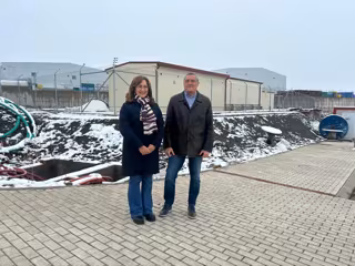 Pedro Pascual y Pilar Muñoyerro, números uno y dos de la lista de Por Ávila a las elecciones autonómicas, en el Polígono Industrial de Vicolozano. - POR ÁVILA