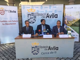 El presidente de la Diputación de Ávila, Jesús Manuel Sánchez Cabrera; el delegado territorial de la Junta de Castilla y León en Ávila, José Francisco Hernández Herrero, y el diputado responsable de Turismo, Asuntos Europeos y Energía en la Diputación Provincial, Rafael Pérez Nieto, han presentado esta iniciativa que se enmarca en el proyecto transfronterizo Moveletur, en el que participa la institución provincial, junto con la Fundación Patrimonio Natural de Castilla y León y el Ente Público Regional de la Energía (EREN), además de otros cuatro socios de Portugal.