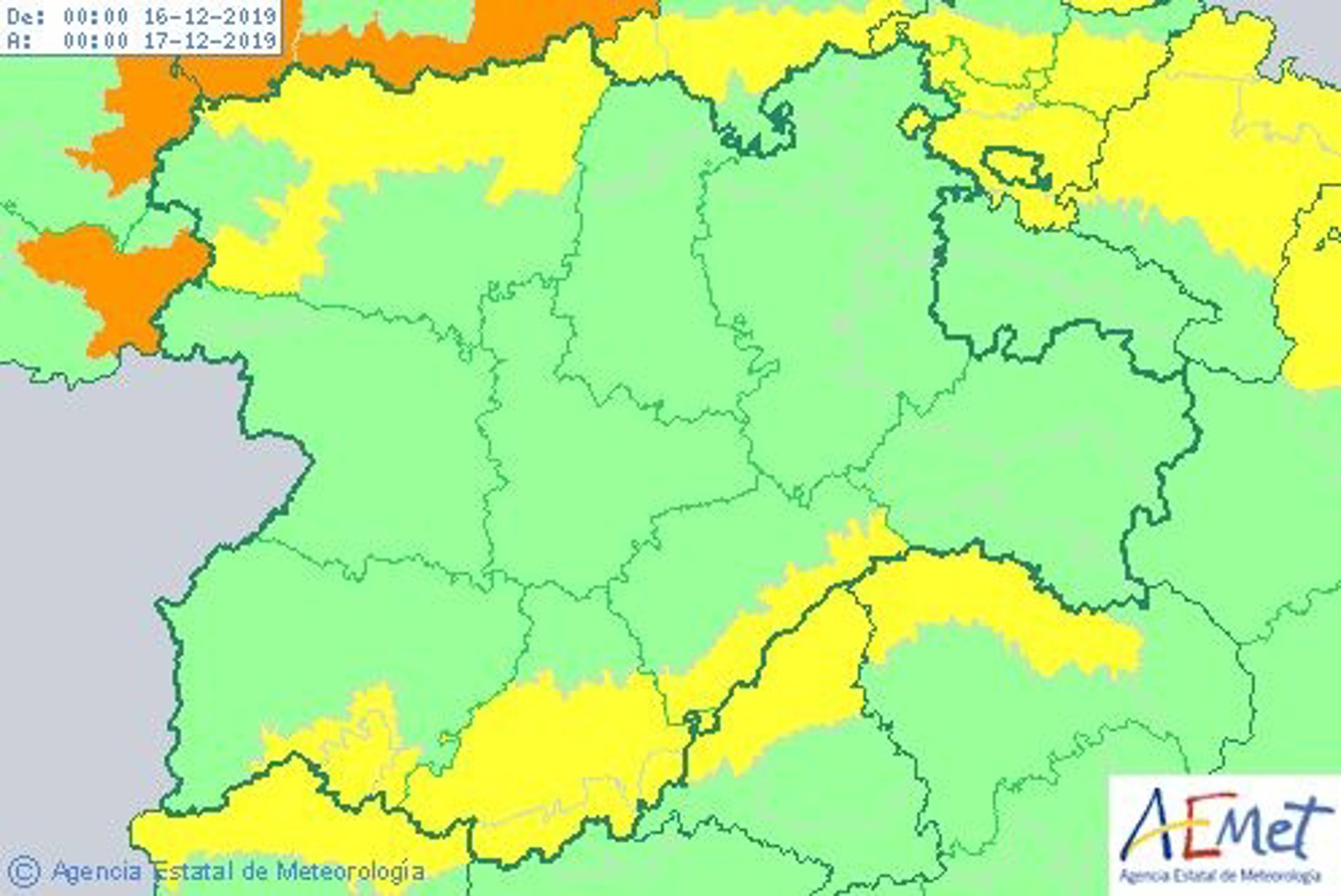 Avisos de la AEMET para este lunes, 16 de diciembre. - AEMET