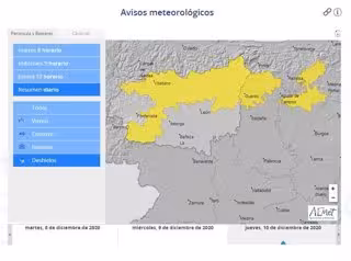 En los tres casos se ha activado aviso de nivel amarillo ya que se prevé que los deshielos de la jornada del jueves se unan a precipitaciones persistentes.