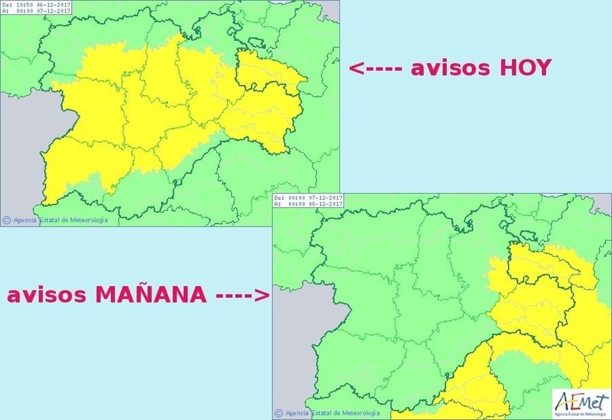 Las mismas fuentes advierten de que la actual situación meteorológica actual puede favorecer la formación de nieblas en la Meseta, que pueden ser localmente persistentes.