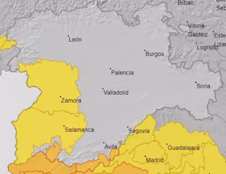 Según advierte la Aemet, estas últimas máximas se esperan en los valles de los ríos y, preferentemente, en el oeste de las zonas de meseta de Salamanca y Zamora.