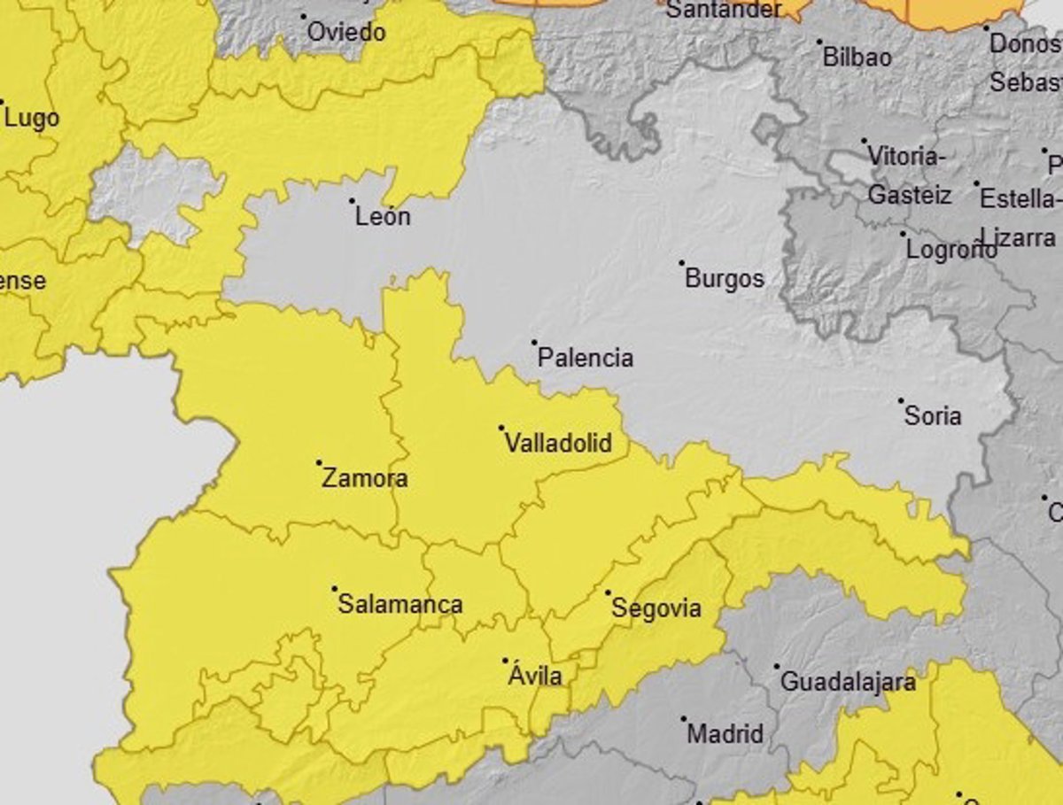 Los avisos se activan entre las 9.00 y las 21.00 horas en la meseta en las provincias de Salamanca, Zamora, Valladolid y Segovia; entre las 12.00 y las 00.00 horas en Sanabria y León y a partir de las 15.00 horas y hasta las 00.00 horas en el sistema central de Segovia y Soria.