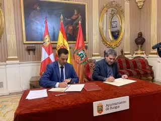 El alcalde de Burgos, Daniel de la Rosa, y el presidente del Cabildo Metropolitano de la Catedral de Santa María, Vicente Rebollo, han firmado este lunes un convenio de colaboración para afrontar la renovación de la iluminación ornamental de la Seo.