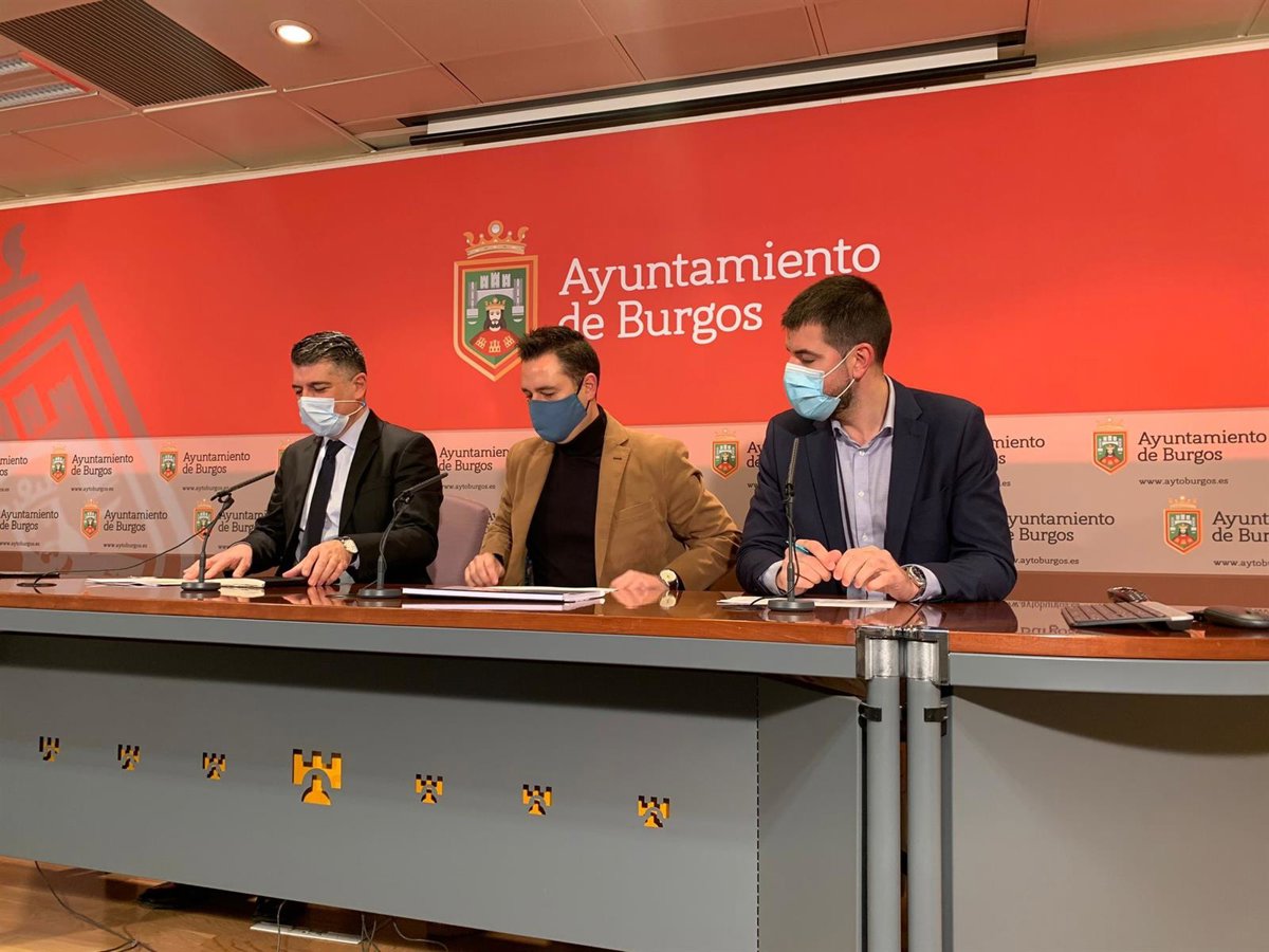 El alcalde (C) junto al vicealcalde y el concejal de Hacienda. - AYTO BURGOS