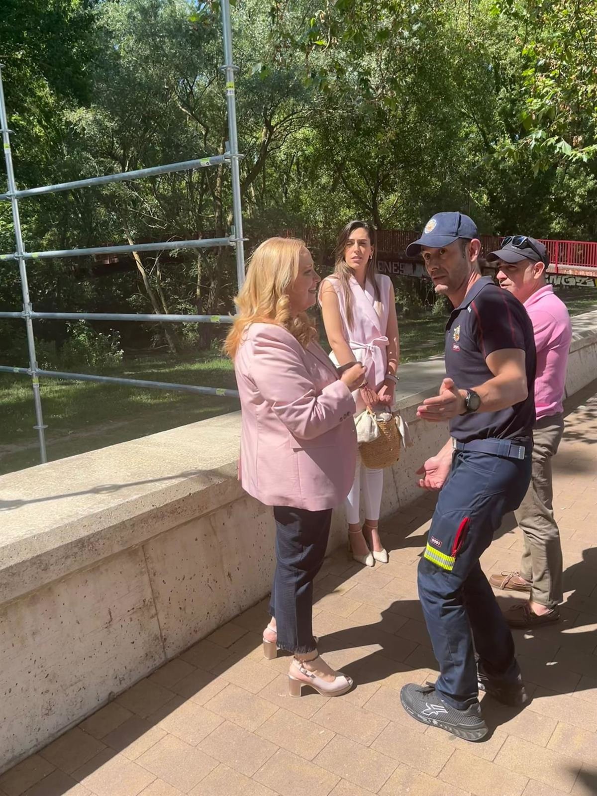La alcaldesa de Burgos, Cristina Ayala, visita la zona donde se instala esta pasarela provisional para la fiesta del Curpillos. - AYUNTAMIENTO DE BURGOS