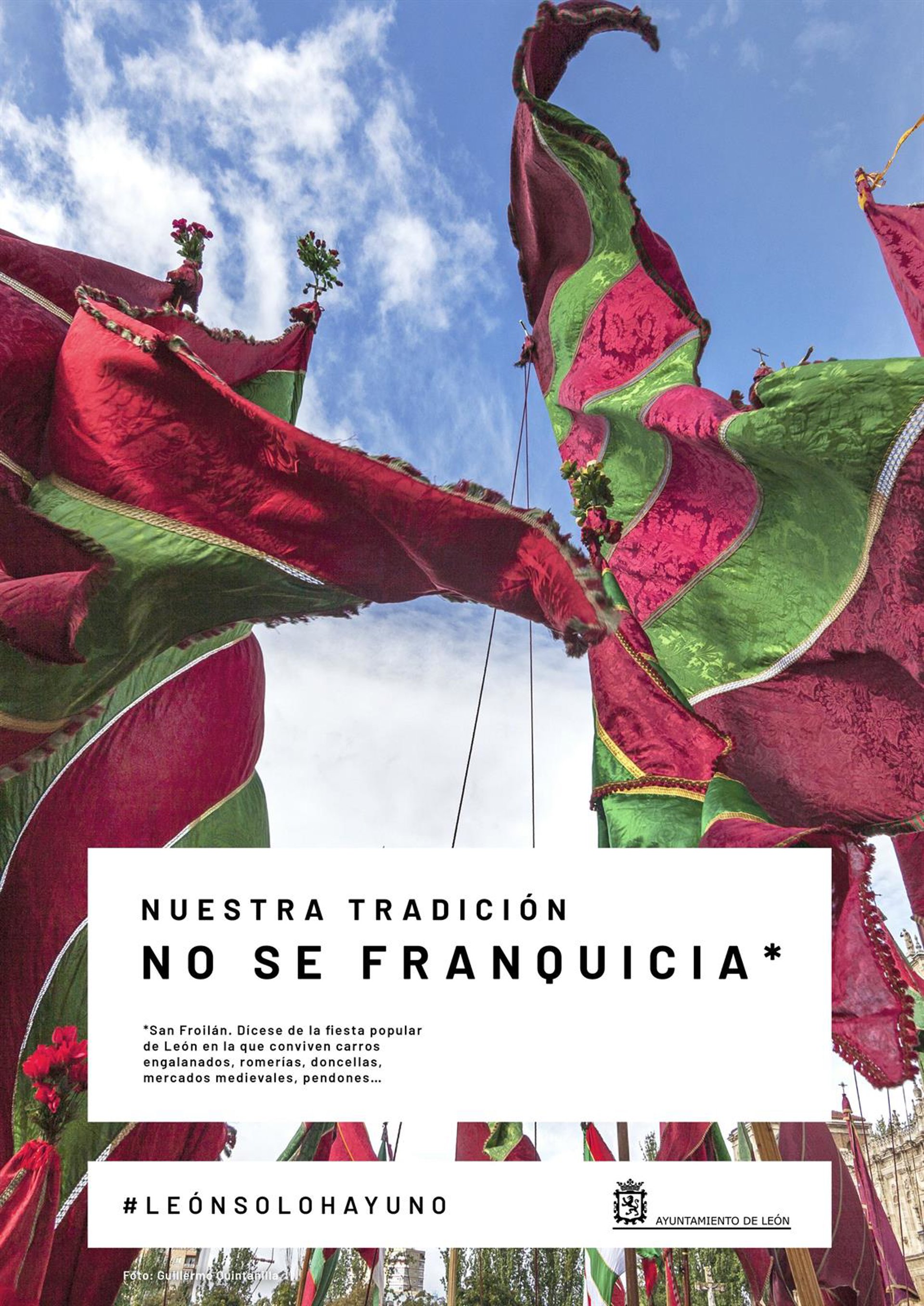Bajo el lema #Leónsolohayuno se exponen los atractivos turísticos de la capital leonesa, su historia, patrimonio y arquitectura así como su gastronomía y tradiciones: imágenes de pendones leoneses, de lugares como San Isidoro o Casa Botines y también productos leoneses, en este caso la cecina.