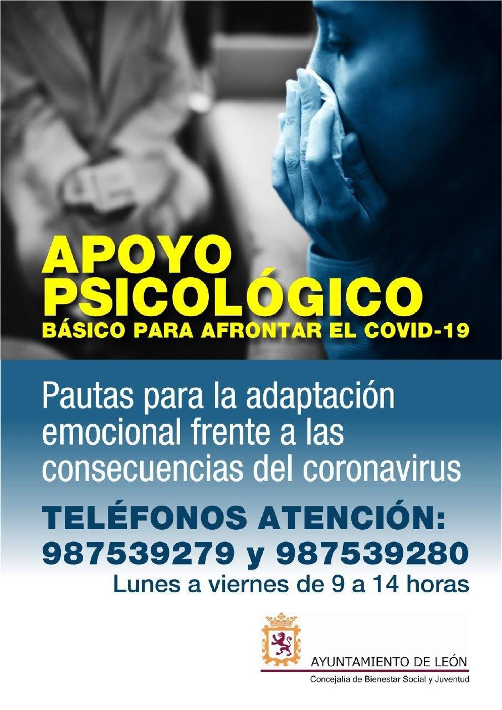 El Ayuntamiento de León, a través de la Concejalía de Bienestar Social y Juventud, ha puesto a disposición de la ciudadanía un teléfono de apoyo psicológico como medida de apoyo a la población vulnerable durante el confinamiento.