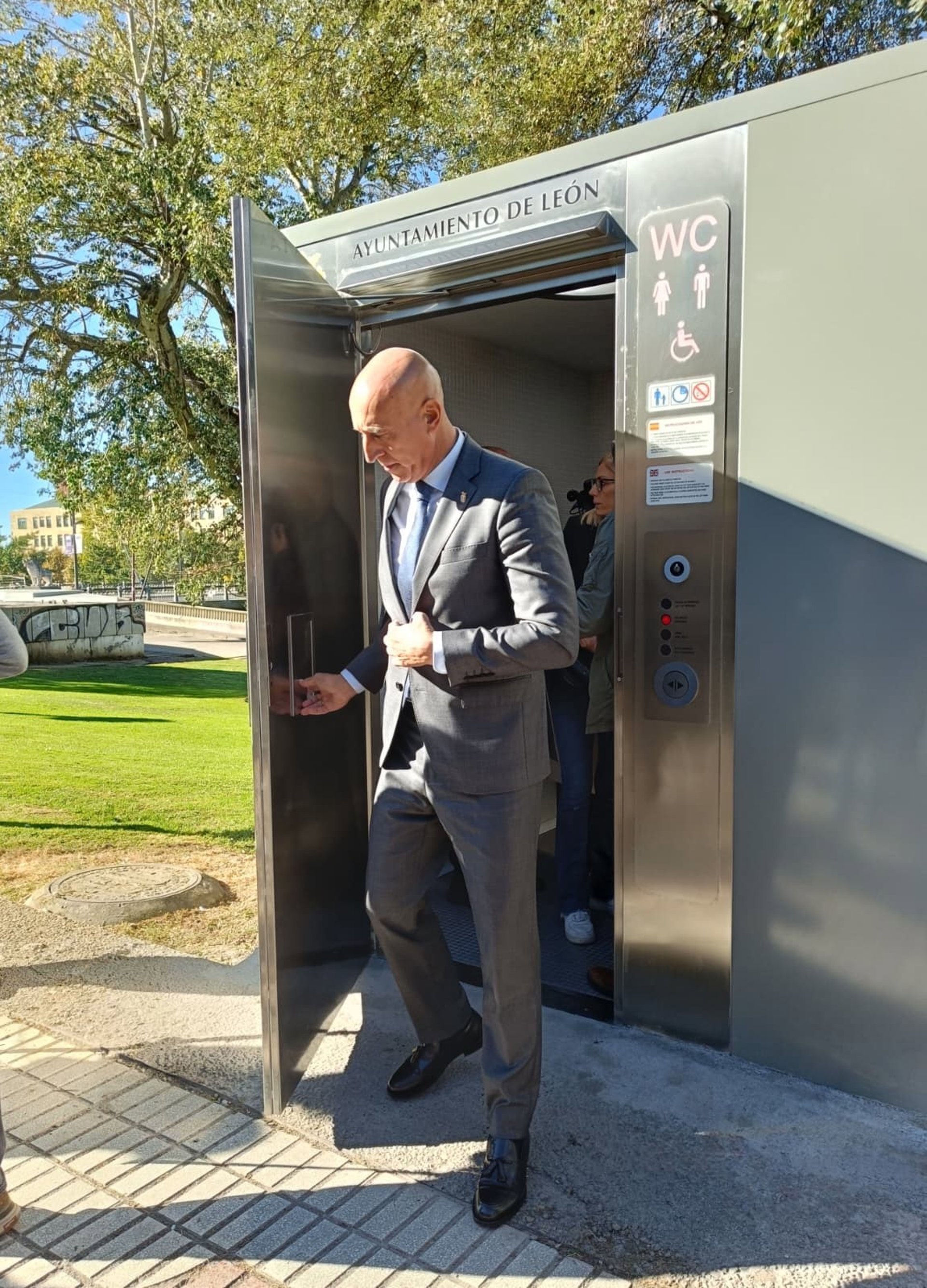 El alcalde de León, José Antonio Diez, visita uno de los nuevos aseos públicos de la capital leonesa, ubicado en el Paseo Condesa Sagasta. - EUROPA PRESS
