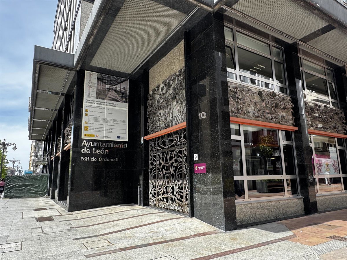El Ayuntamiento de León, a través de la Concejalía de Desarrollo Urbano, ha iniciado los trabajos de restauración del conjunto escultórico de hierro fundido del escultor zamorano José Luis Alonso Coomonte que decora la portada del edificio consistorial en la avenida Ordoño II.